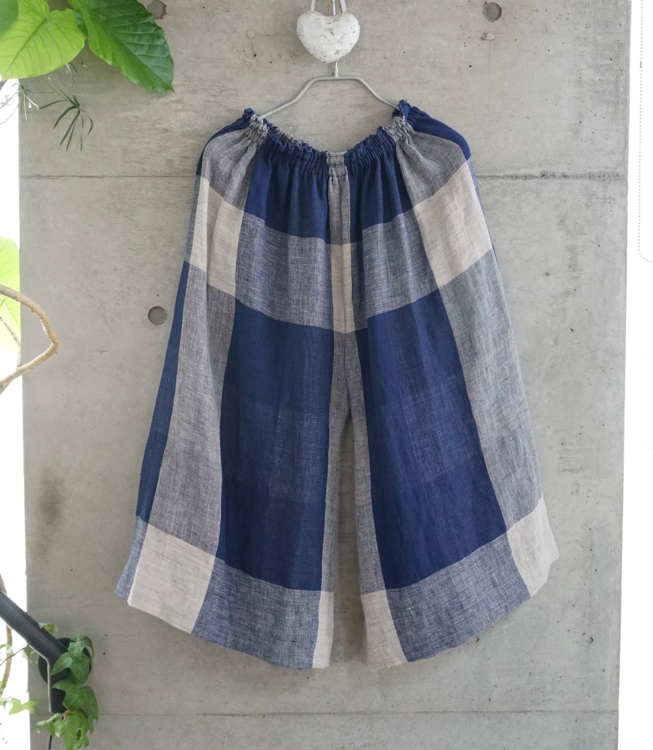 織り柄が素敵な、とても肌触りが良い生地を使用したギャザーたっぷりのワイドパンツです。